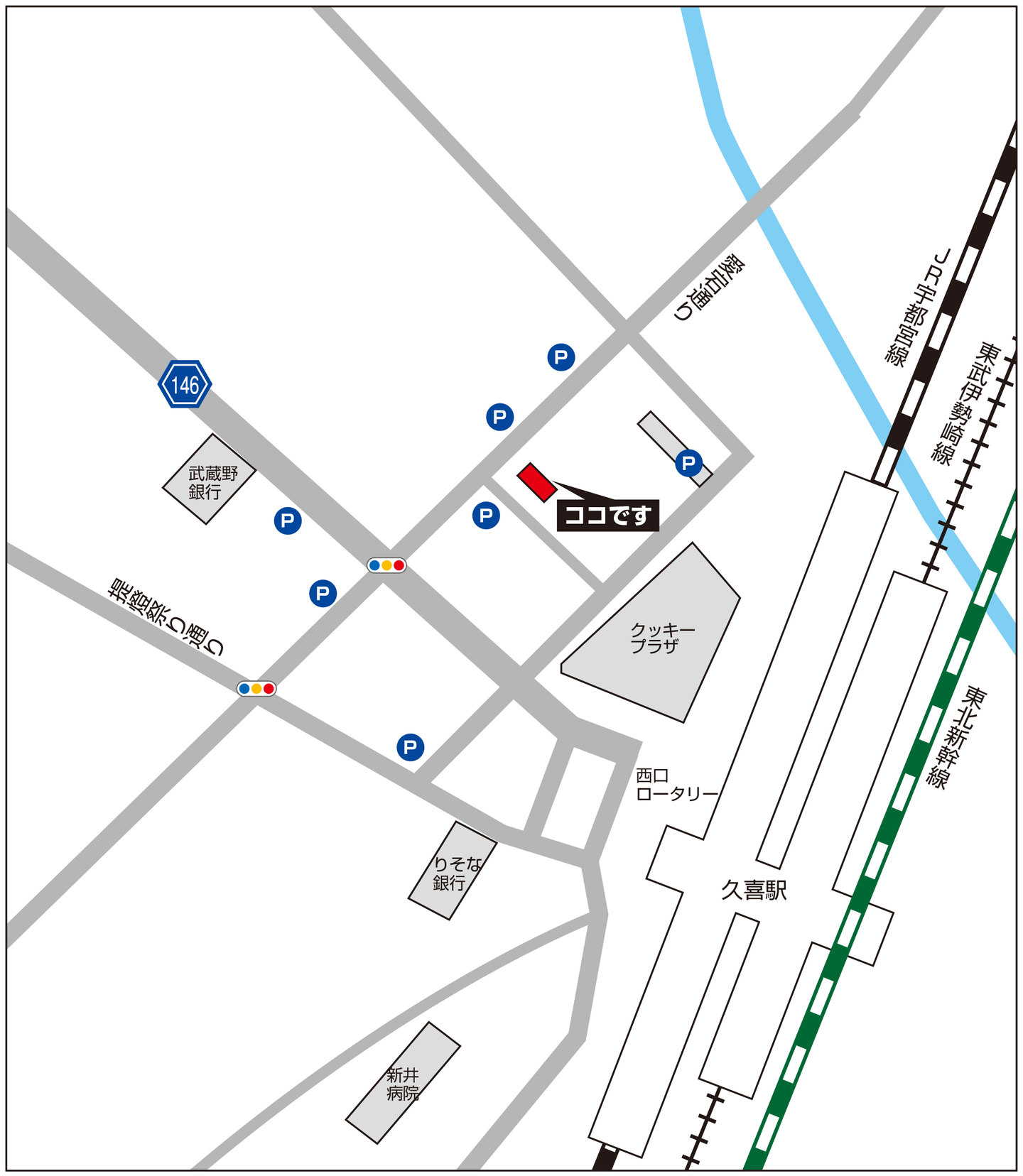 ※JR宇都宮線・東武伊勢崎線「久喜駅」西口より徒歩約3分